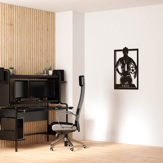 Cuadro de futbolista de madera con nombre y numero personalizado
