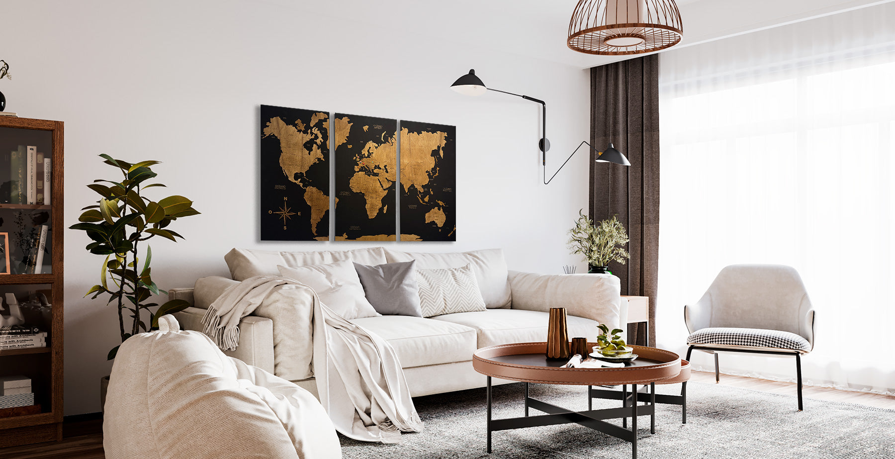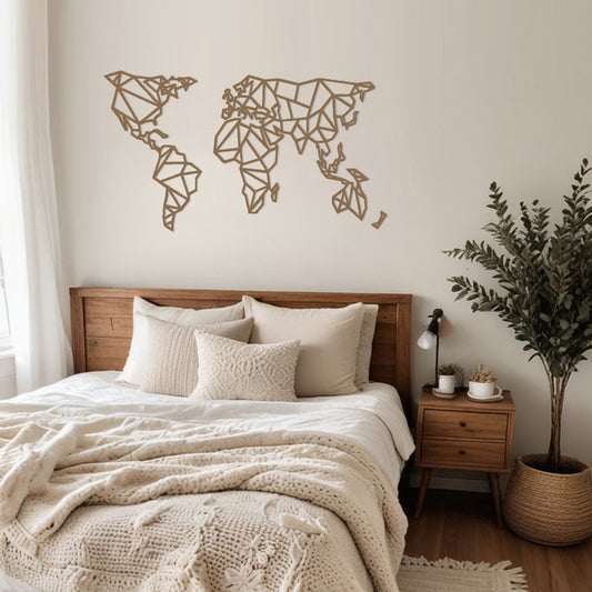 Mapamundi geométrico de madera para pared
