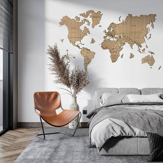 Mapamundi de madera decorativo para pared color roble
