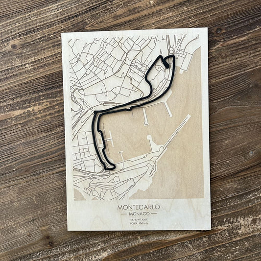 Cuadro circuito Mónaco - Fórmula 1 - grabado en madera