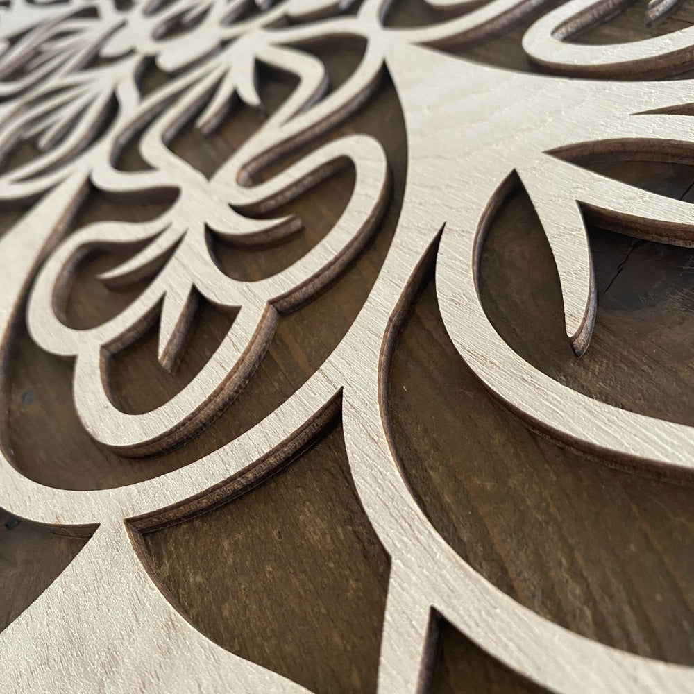 Materiales: Nuestras mandalas están elaboradas en madera natural y se presentan en 4 acabados únicos, pensados para armonizar con diferentes estilos de decoración:
