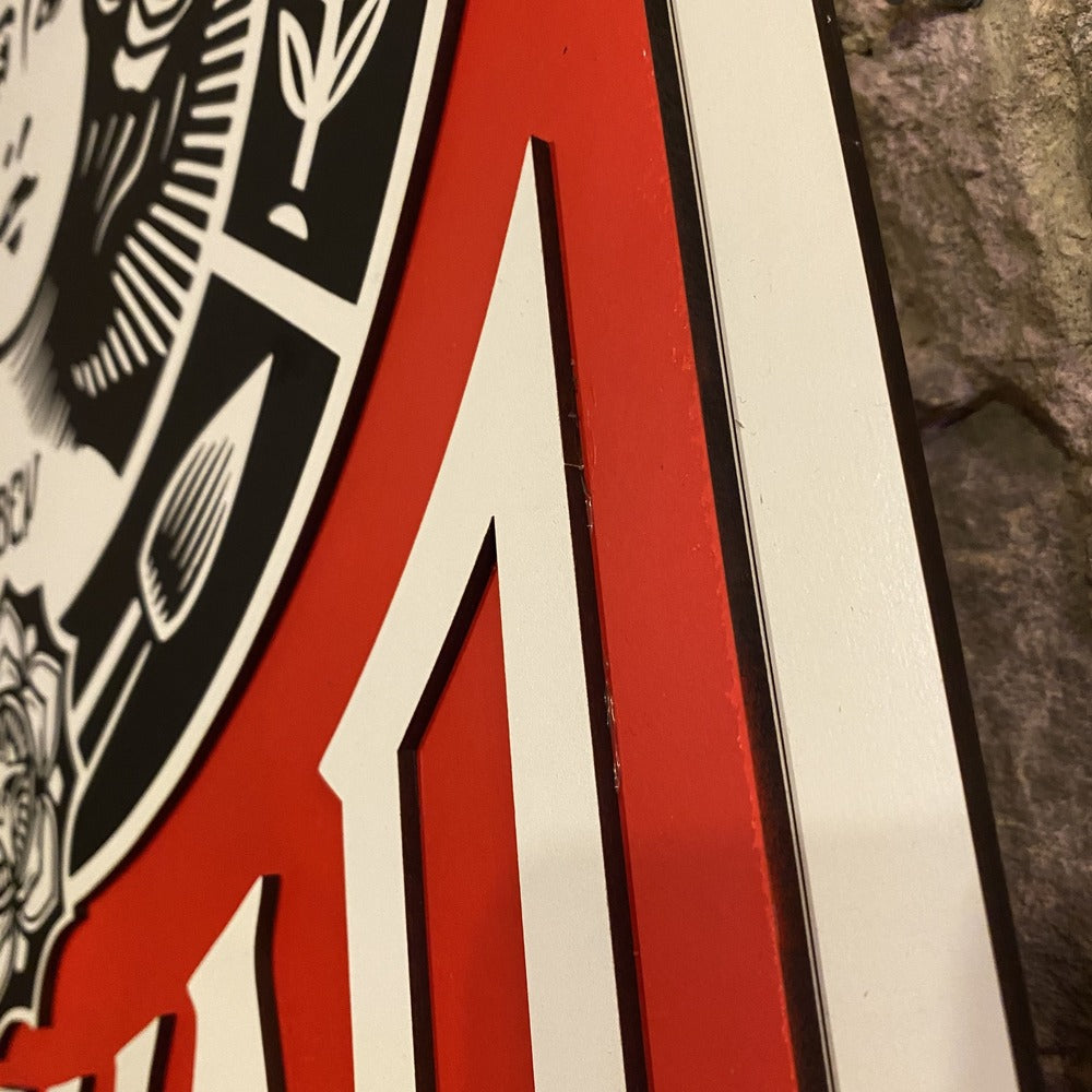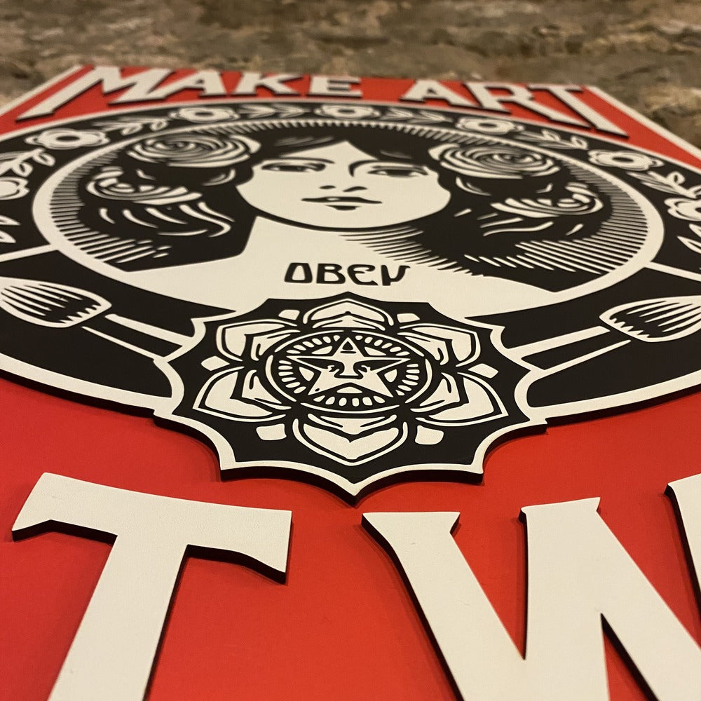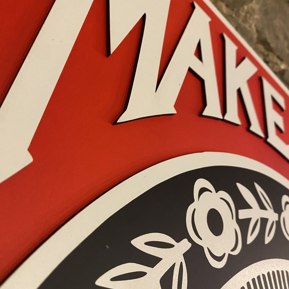 2 MDF layers: 5 mm black painted MDF wood and the letters in 5 mm natural MDF.