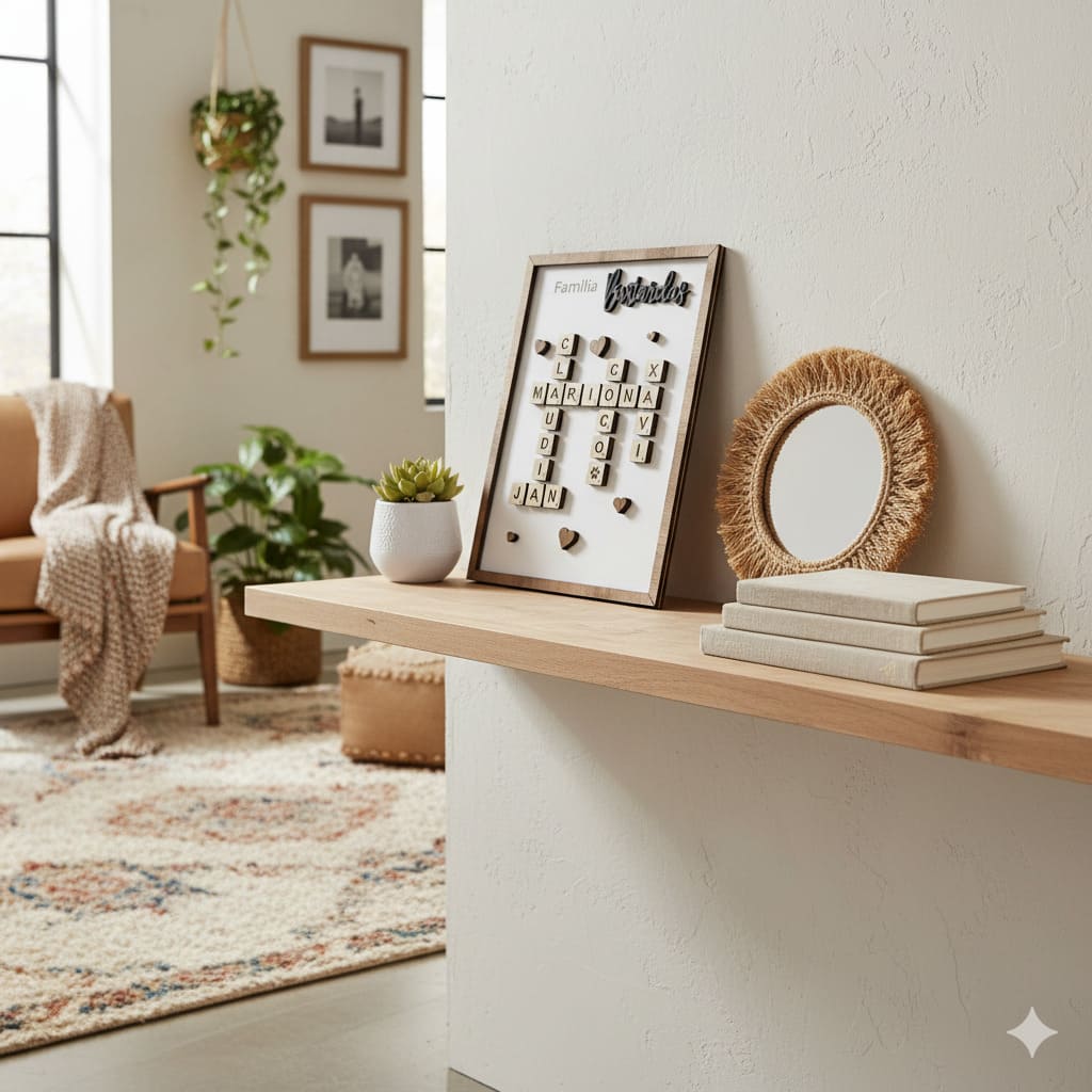 Cuadro de madera con letras de scrabble para nombres de familia, amigos, ideal para regalar a abuelos, padres como regalo del Día de la madre, día del padre, Navidad,...