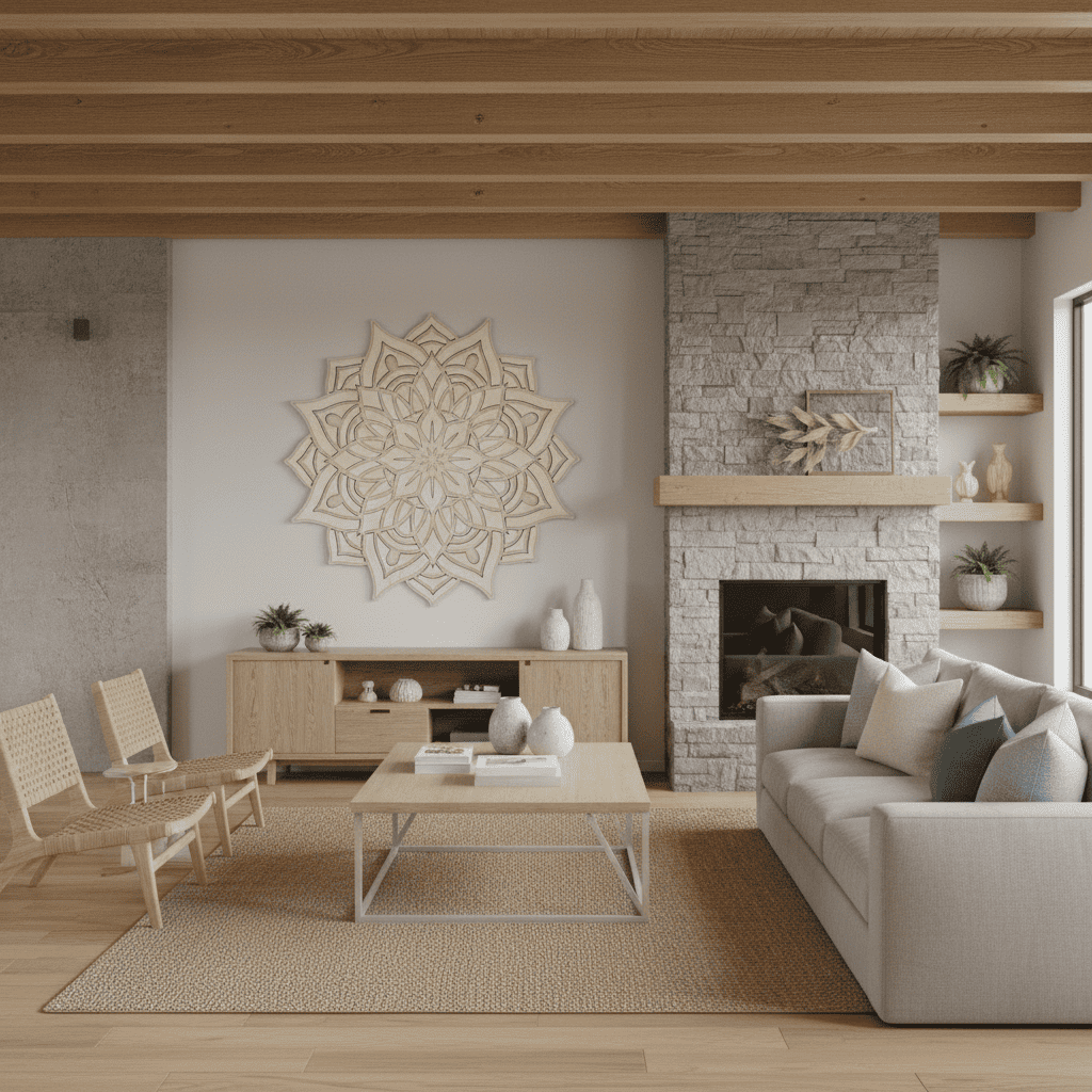 Cada tono resalta las formas y texturas de la madera, convirtiendo tu mandala en una pieza decorativa única que aporta equilibrio, calma y belleza natural a tu hogar.