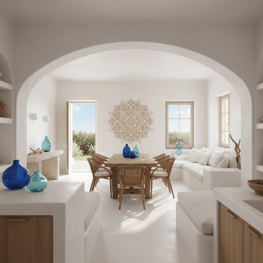 Cada pieza sobrepuesta respira calma y equilibrio interior.