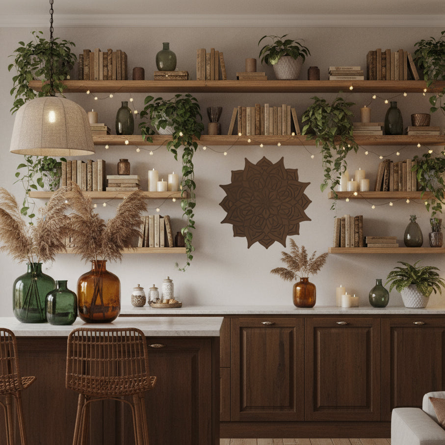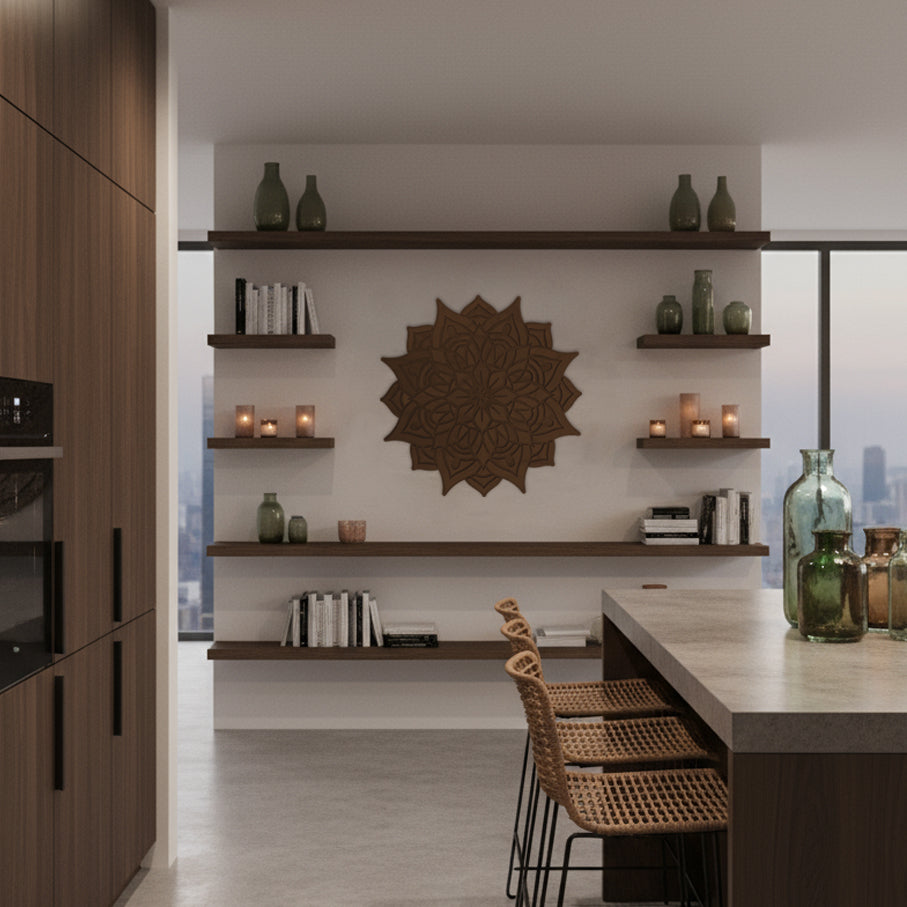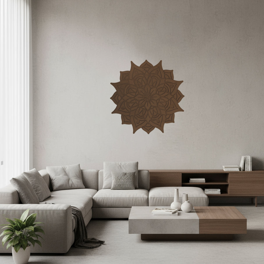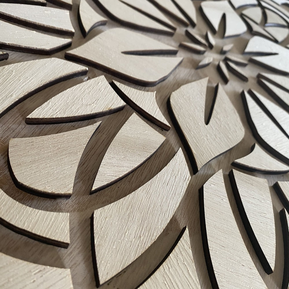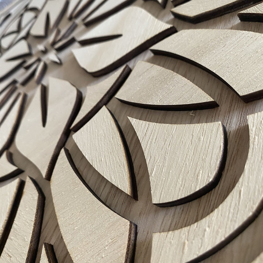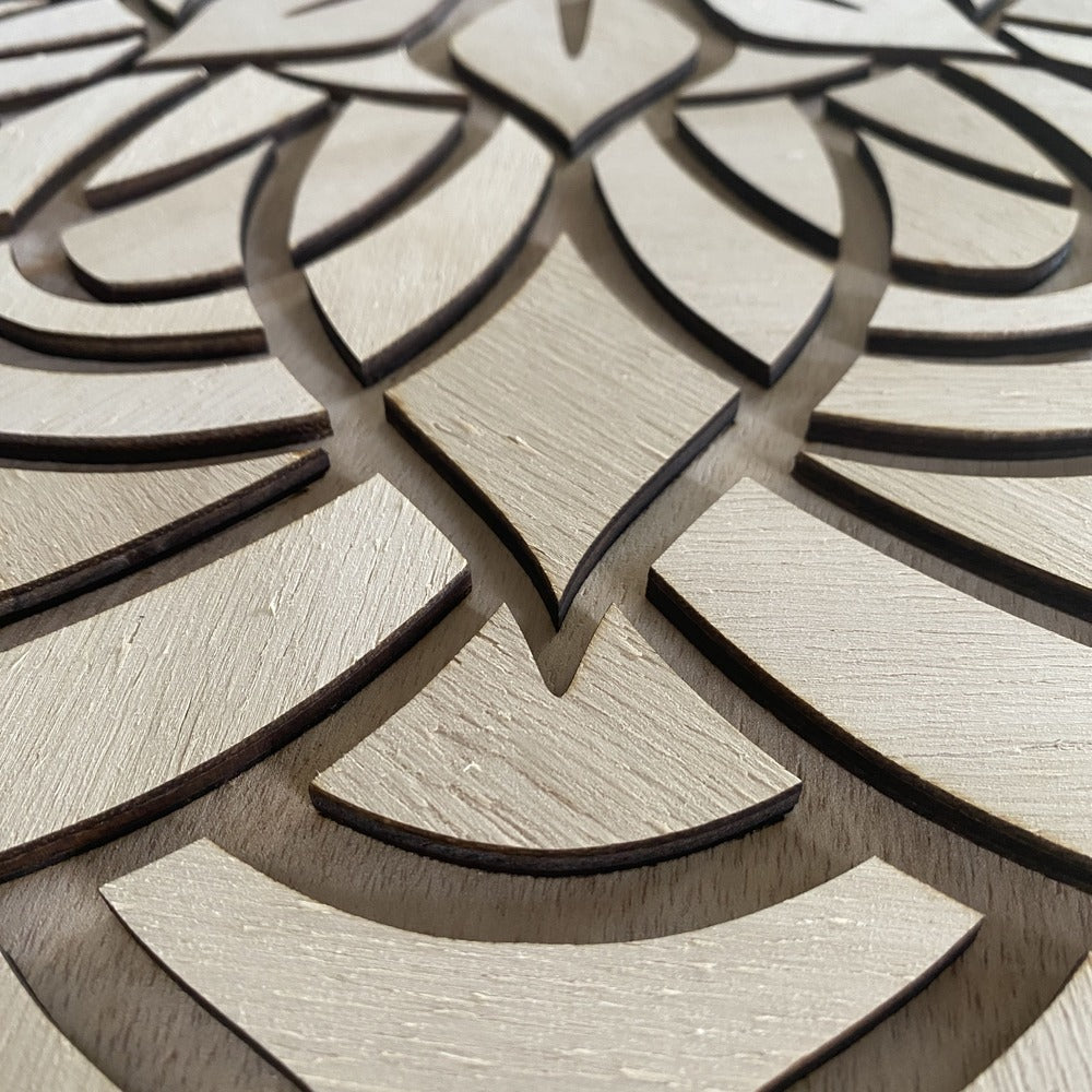 Materiales: Nuestras mandalas están elaboradas en madera natural y se presentan en 4 acabados únicos, pensados para armonizar con diferentes estilos de decoración: