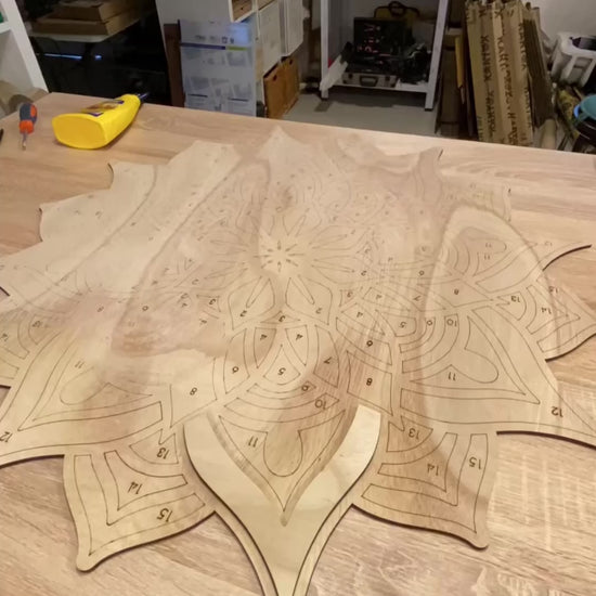 Cada tono resalta las formas y texturas de la madera, convirtiendo tu mandala en una pieza decorativa única que aporta equilibrio, calma y belleza natural a tu hogar.