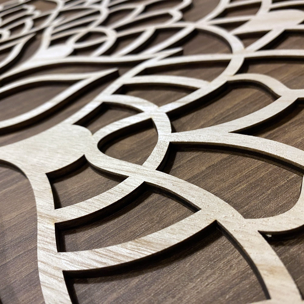 Materiales: Nuestras mandalas están elaboradas en madera natural y se presentan en 4 acabados únicos, pensados para armonizar con diferentes estilos de decoración: