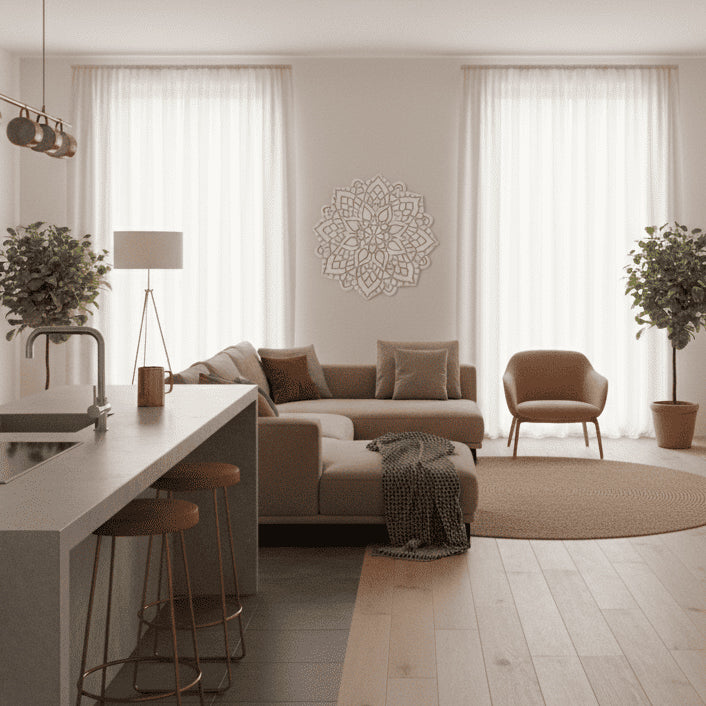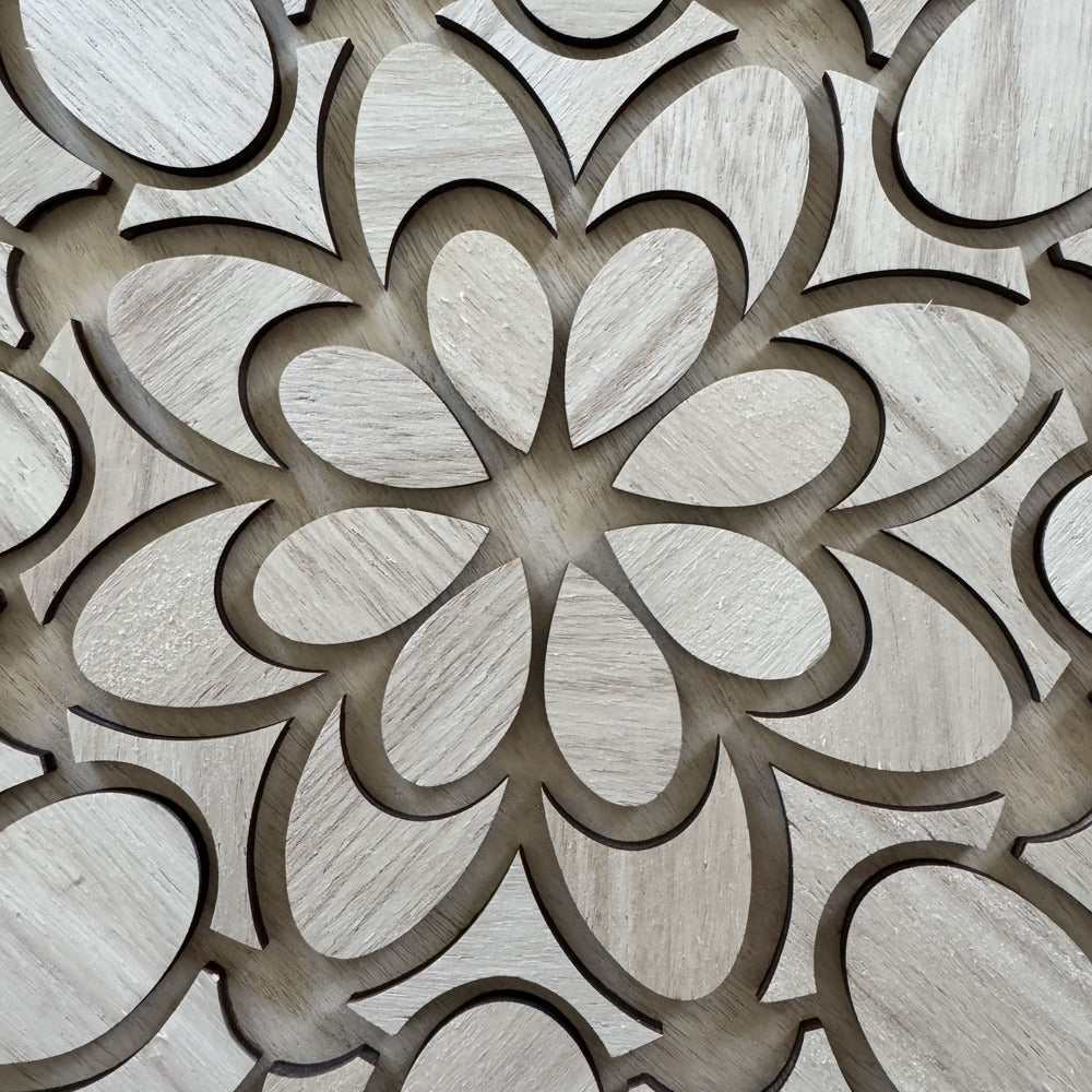 Materiales: Nuestras mandalas están elaboradas en madera natural y se presentan en 4 acabados únicos, pensados para armonizar con diferentes estilos de decoración: