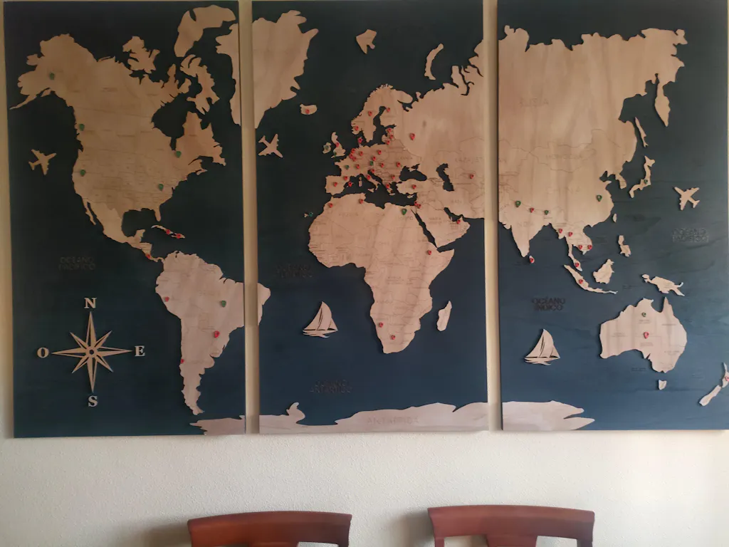 Los pins están geniales, recomiendo usar grandes y pequeños como en mi caso que compré el mapamundi Galileo de 120*200 más o menos y también está espectacular, el único problema es que se construcción un poco las tablas abajo y pensaba que volverías pero ya llevo más de un mes y siguen igual, no se nota demasiado pero si por casualidad te paras y lo ves desde un lado al entran se ve como sobresale. Y como mejora, si tuvieran algún método al escribir los martes que pudiera resaltar más, le vendría muy bien, porque apenas se ven. Sinceramente estoy a pesar de todo muy contento y en mi caso que super bien